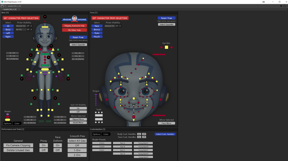 maya rig rigs character expressive josh sobel girl female man male woman kayla little girl boy kid child teen teenager cute kyle glasses nerd robot mech android