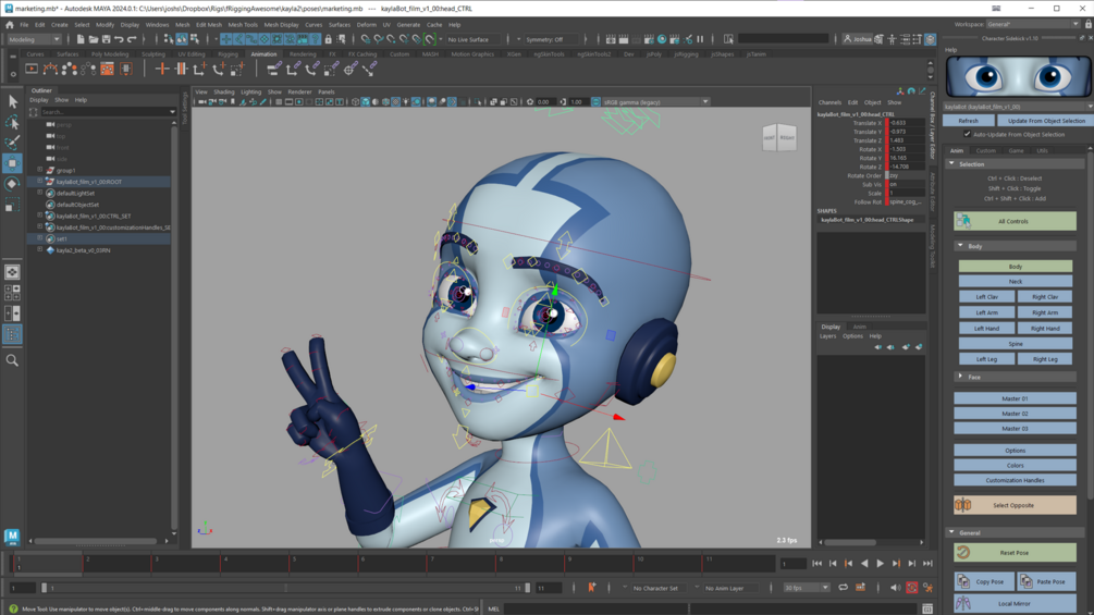 maya rig rigs character expressive josh sobel girl female man male woman kayla little girl boy kid child teen teenager cute kyle glasses nerd robot mech android