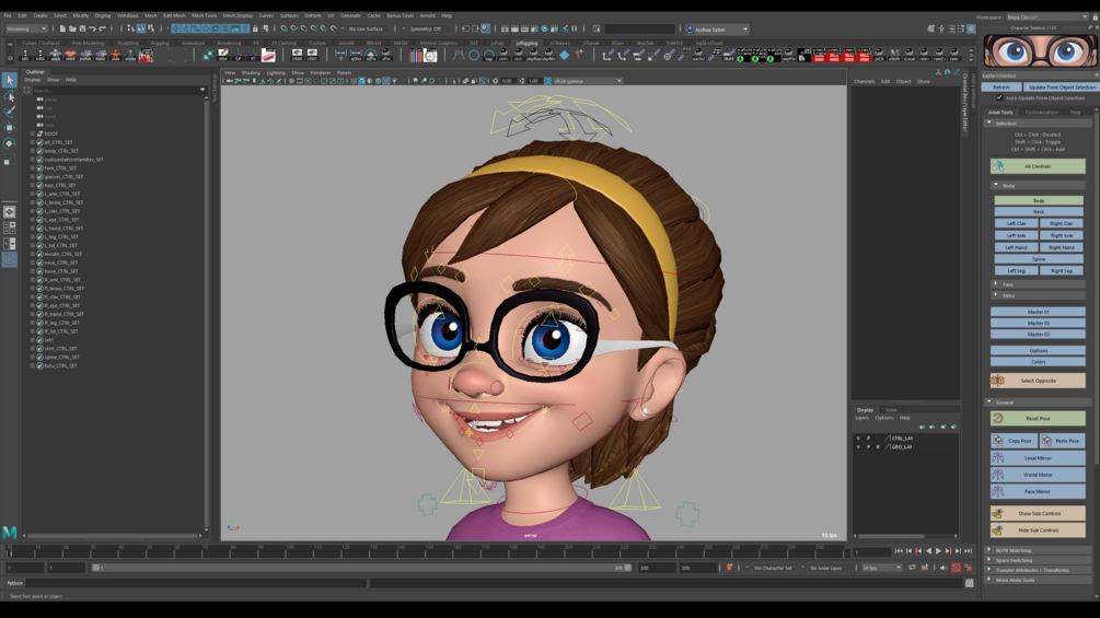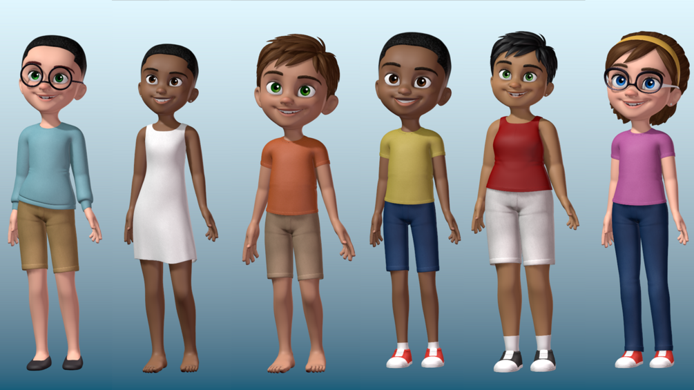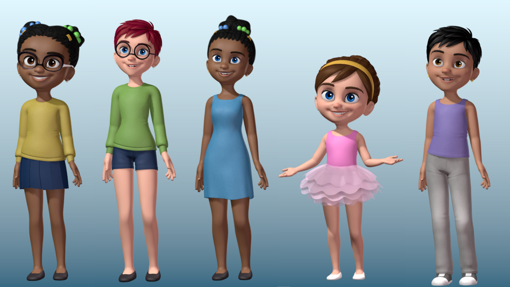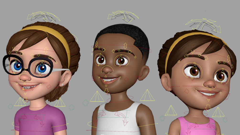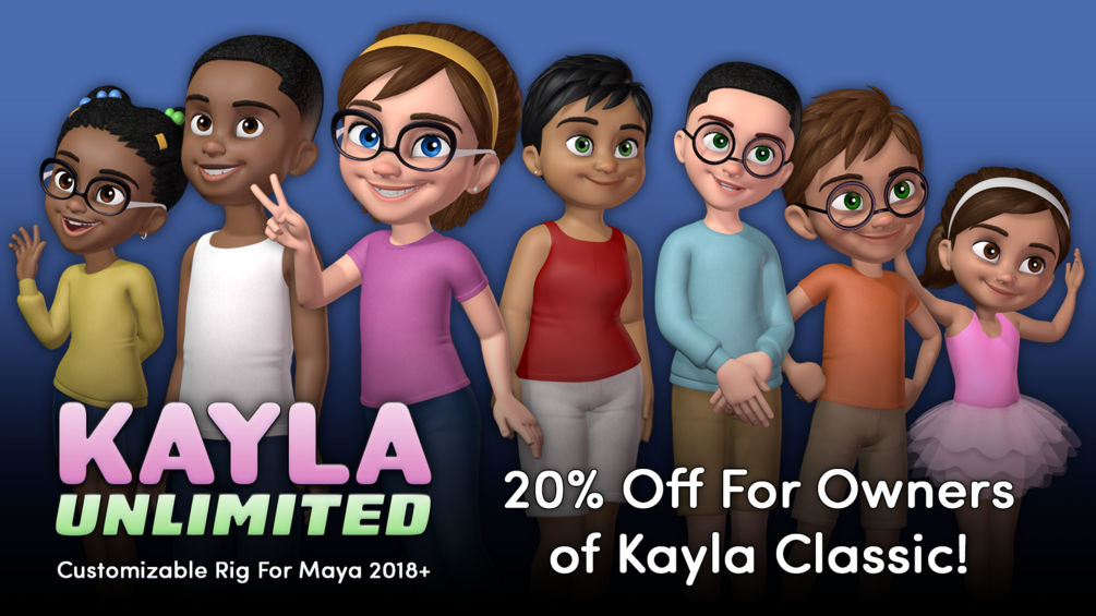 maya rig rigs character expressive josh sobel girl female man male woman kayla little girl boy kid child teen teenager cute kyle non binary black bubbles tutu ballerina glasses nerd